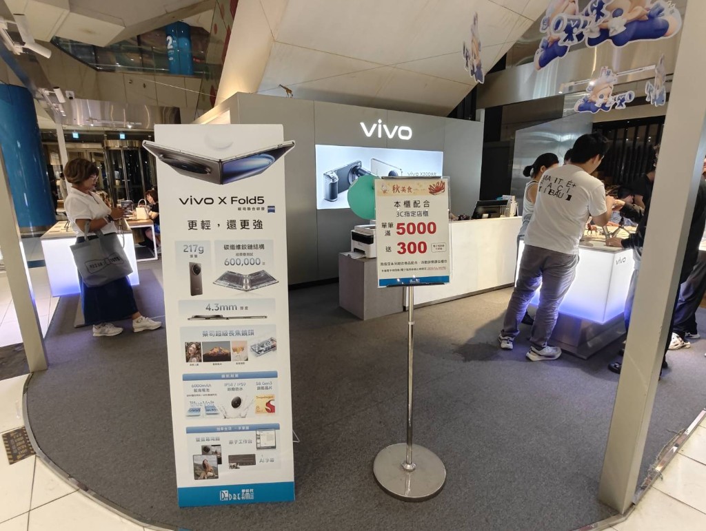 位於高雄夢時代購物中心的 VIVO品牌體驗店,自十一月一日起舉辦 X300系列手機預售活動,原應可同時配合夢時代購物中心推出的「3C商品滿五千元送三百元電子折抵券」優惠方案,消費者可用折抵券直接減少手機購機金額。