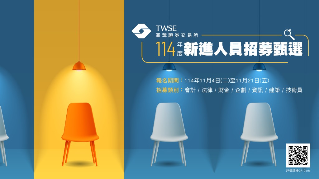 面對全球資本市場加速數位化與智能化的時代趨勢,具備整合思維、創造力與跨領域能力的複合型人才,將成為證交所轉型升級的關鍵戰力,期待具財務金融X資訊科技、證券市場X數據分析、金融商品X市場推廣等多元背景的各界菁英加入證交所,發揮靈活的適應力與團隊協作的溝通能力,成為推動市場跳躍式成長的新戰力,更為我國市場注入永續活力,攜手邁向國際舞臺的嶄新里程。