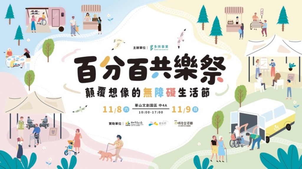 11月9日(日)《百分百共樂祭》將迎來最具感動與力量的一天。活動壓軸舉辦【百分百音樂會】,邀請多位身障音樂人與公益團體登上無障礙舞台,透過現場Live演出,展現「人人都能發光」的生命故事與藝術才華。這不只是一場音樂會,更是讓不同能力者被看見、被聽見的行動。同日也推出深具啟發性的【無障礙生活體驗】活動,以「100公分是無障礙的高度」為設計理念,打造一系列情境模擬與互動展區,讓一般民眾能實際體驗輪椅使用者在日常生活中可能面臨的挑戰。透過這些真實體驗,我們希望打破社會對障礙的刻板印象,讓「共融」從理解走向參與,從同理變成行動。
