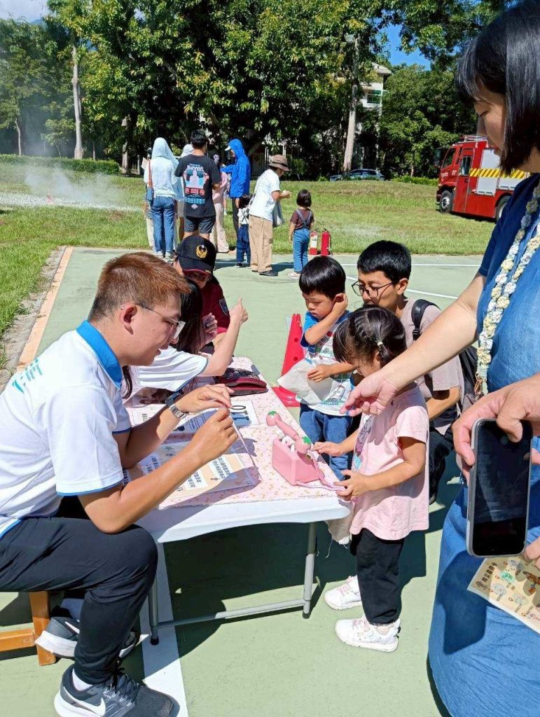 隊員們以淺顯易懂的方式講解,並透過情境模擬與圖片輔助,使孩童們能輕鬆了解在災害發生時應如何保護自己,孩子們在遊戲學習防火、防災與自我保護技能,現場氣氛熱烈,笑聲與學習聲交織不斷。