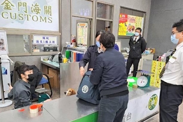 高雄關指出,金門小三通是防疫重點關口,該關為落實「源頭阻絕」原則,加強宣導旅客不得攜帶肉類製品入境於水頭通關大樓入出境大廳張貼警示標語,並實施入境旅客行李百分之百X光檢查及聯合防檢署檢疫犬共同查緝,有效攔截豬肉製品入境。