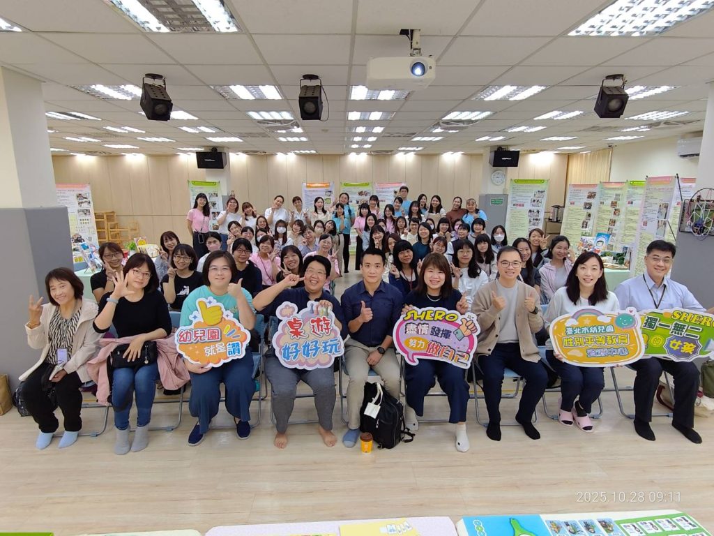 在市立南港幼兒園及中正幼兒園的號召下,參與教師戮力研發產出,於正式發表中,呈現出幼兒學具開發的輝煌成果。