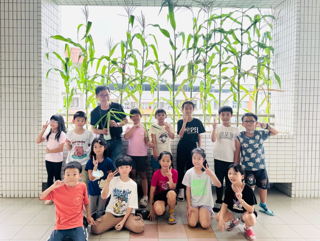 學生董于萱說,第一次種玉米好興奮,老師直接採收玉米筍分給全班吃,真的超甜;學生盧艾辰也說,玉米長得比我還高,看起來像一片綠色窗簾,每天上學看到都覺得好美。