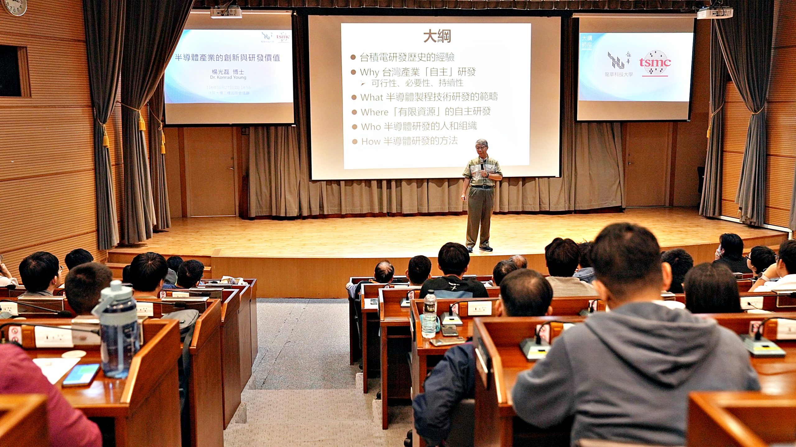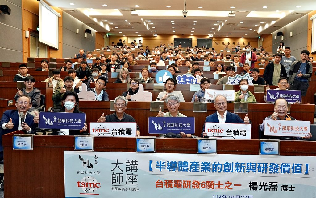 為強化半導體實作人才培育,龍華科技大學特禮聘前台積電研發長、素有「台積電六騎士之一」美譽的楊光磊博士為該校榮譽講座教授,第一講以「台積電研發心法與人才觀」為題,分享其在半導體產業的珍貴經驗與洞察。