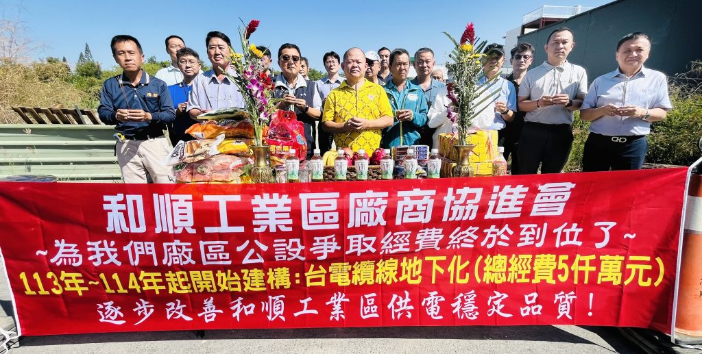 台電台南區營業處斥資五千萬元工程費預算施作和順工業區電纜地下線路,五日舉行謝土儀式,台電台南區處長黃明舜、和順工業區廠協會榮譽理事長吳金寳、理事長陳文祥暨理監事代表上香祈福,未來將有穩定、正常的供電品質,不必再擔心外力介入造成瞬間跳電。