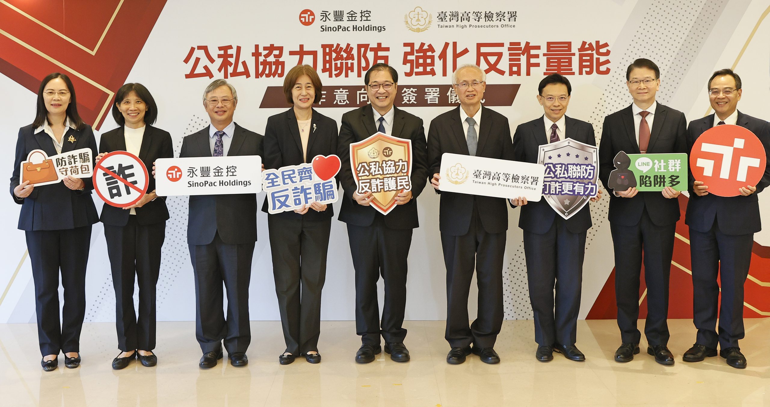 永豐金控今(5)日與臺灣高等檢察署(以下簡稱高檢署)正式簽訂「可疑交易分析機制」專案合作意向書(MOU)。此次合作,象徵金融業與司法機關攜手打造更完善的防詐聯防網絡,積極守護民眾財產安全,強化金融體系反詐及洗錢防制能力。