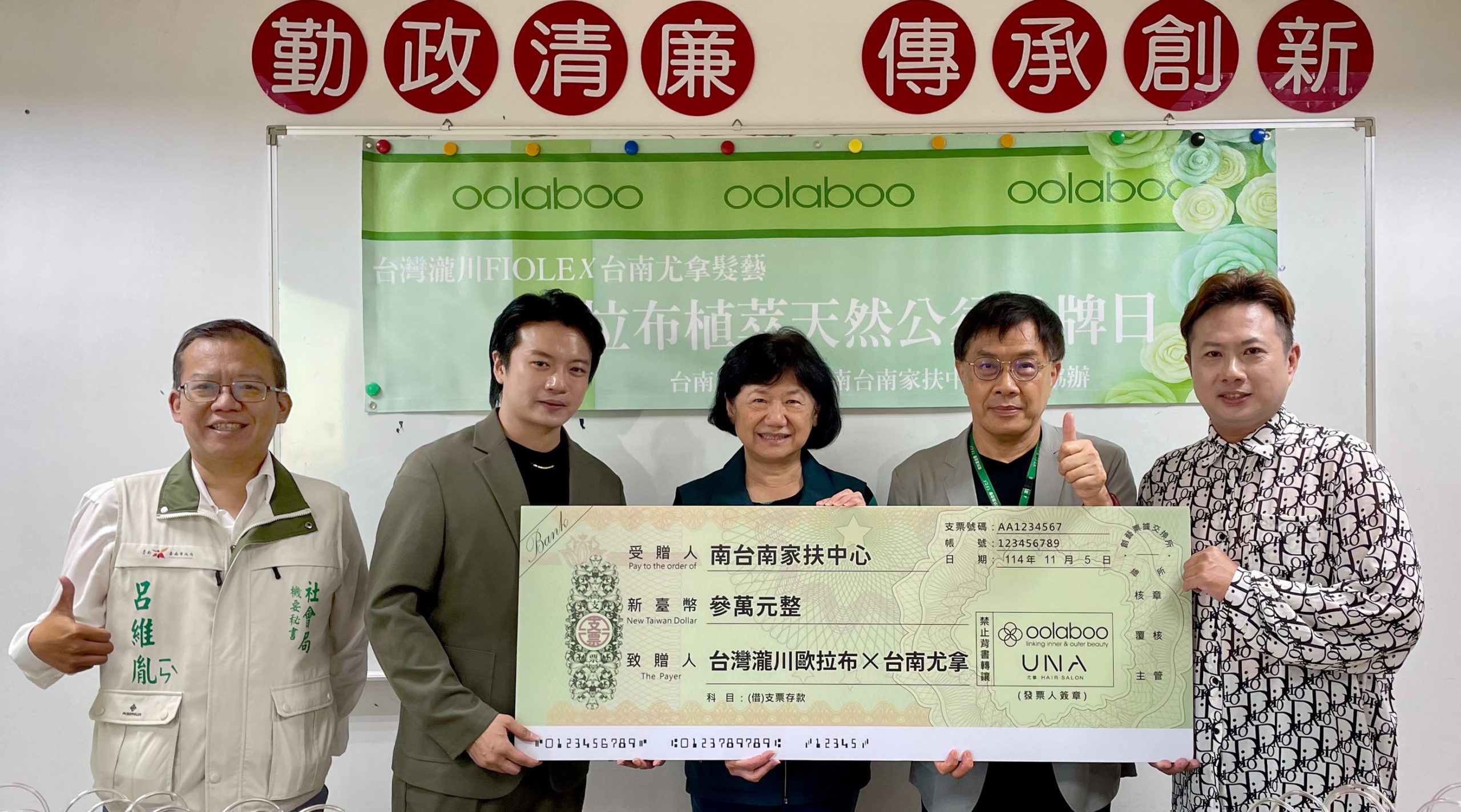 尤拿髮藝成大館及台灣瀧川有限公司秉持「取之於社會,用之於社會」的精神,五日捐贈三萬元予財團法人台灣兒童暨家庭扶助基金會台南市南區分事務所,支持弱勢家庭及兒少照顧服務。