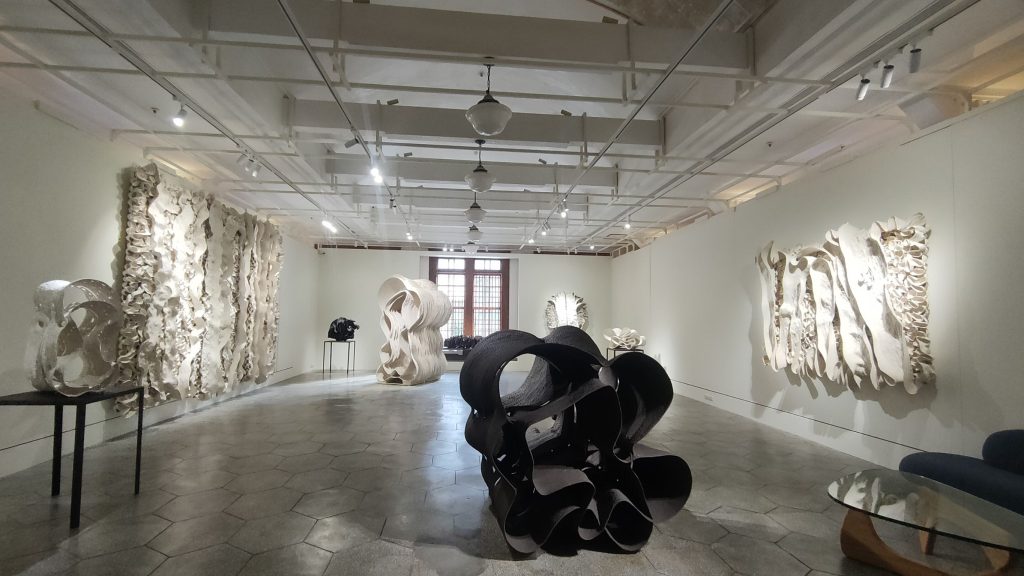 畫廊創辦人蘇三表示,進駐後希望菜歷史厚度上,開展屬當代藝術未來。首展「潤潤 」,徐永旭以陶土為媒材,創作具靜謐與力量作品,象徵滋養與延續,寓意藝術在時間與土地間的流動與呼吸。其大型作品,塑形極大極薄陶品,展現藝術的厚度與靜光。