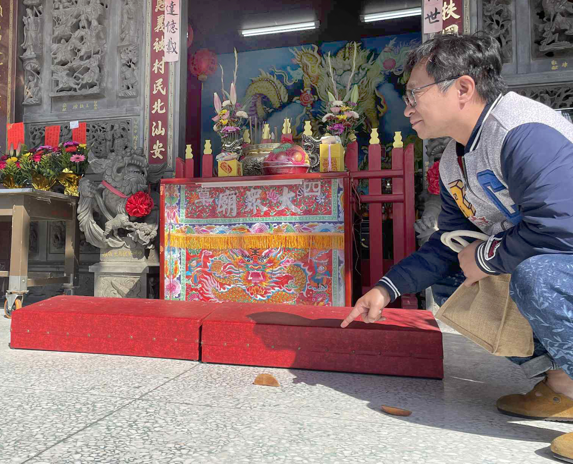 安南區四草大眾廟、五塊寮慶和宮及佳里區子龍廟永昌宮三間兄弟廟,今年不約而同擲到難得一見的「立筊」。安南區長魏文貴表示,三間兄弟廟神明之間不言而喻的靈契,顯現天定之誼,更感受到神威的庇佑。