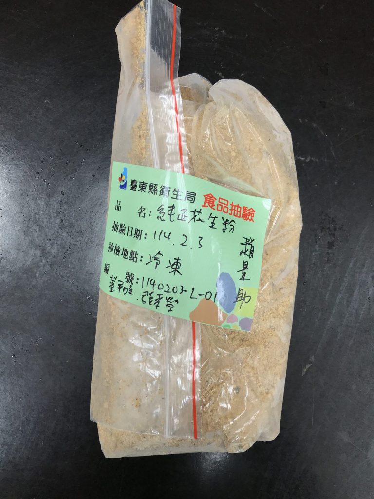 食藥署表示,經檢驗其中花生粉1件為總黃麴毒素達100μg/kg、黃麴毒素B1為83μg/kg皆超過限量標準,且違規業者經地方主管衛生機關命其限期改正,複檢抽驗不合格,依食安法處3萬元罰款。