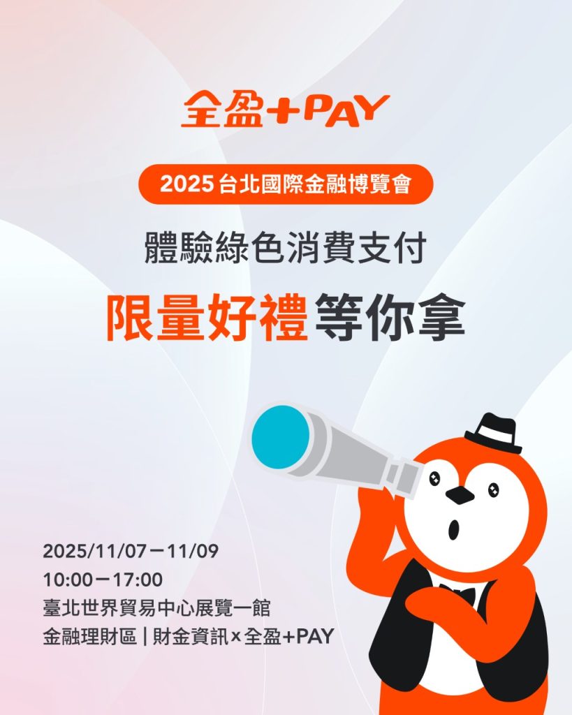 2025台北國際金融博覽會將於2025年11月7日至9日在台北世貿一館盛大舉行。今年以「普惠金融」為核心理念,聚焦「金融防詐」、「永續金融」、「退休理財」三大主題,呼應政府推動台灣金融產業永續發展的目標。全盈+PAY攜手財金公司TWQR數位支付,於會場展出「綠色消費支付服務-減碳贏家」,邀請大眾體驗結合綠色金融與創新應用的支付服務。