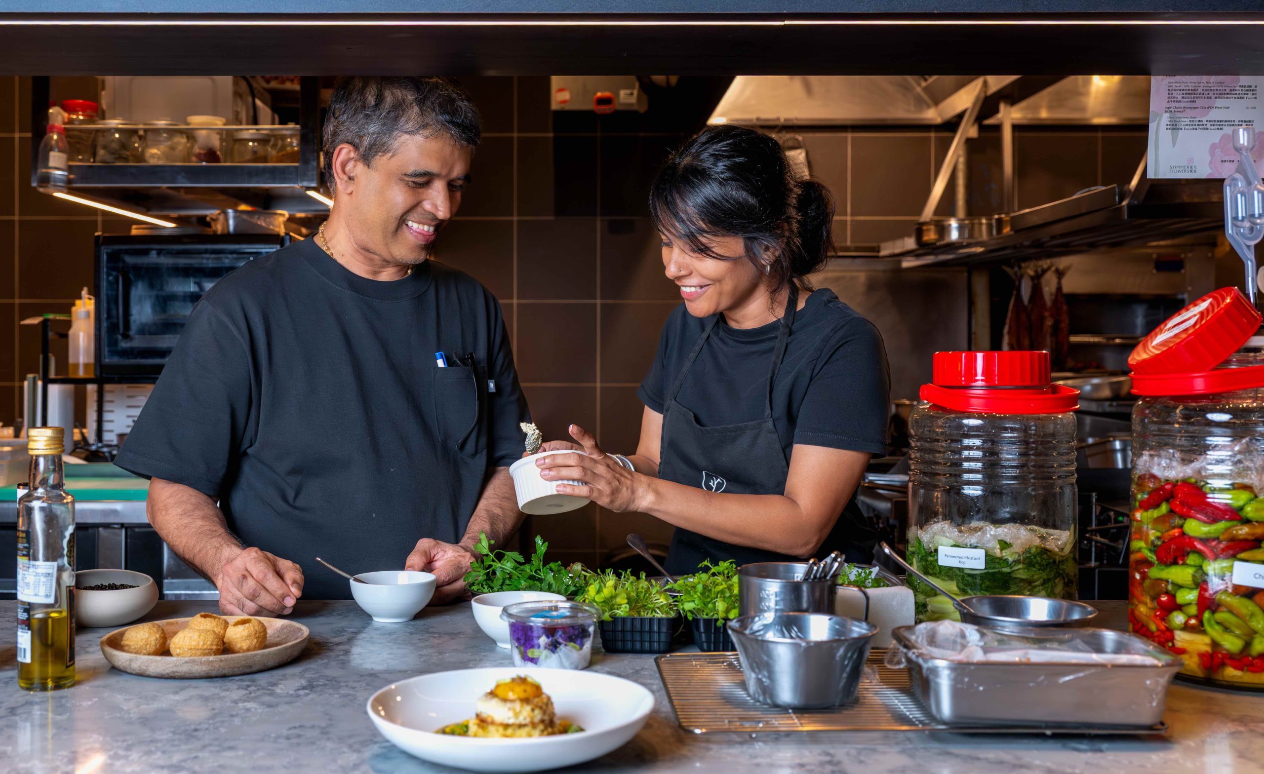 主廚Joseph與Gayatri雖是首次合作,兩人卻早有共同信念:要打破框架,讓世人知道印度料理不只是咖哩與烤餅!「這次合作是一場跨越地域限制與重啟認知的廚藝對話。」主廚 Joseph 表示,Gayatri奔放的創意與風味組合想像,打開了自己許多未曾嘗試過或不熟悉的風味領域,對他而言猶如開啟了一道新的風味之門,像是加入醃漬手法與米麴、味噌對食材帶來的風味厚度與鮮味,是他過去未曾想像過的可能。」主廚Gayatri也感性地說:「我曾陸續和四位不同地區的主廚攜手合作餐會,因此深信向彼此學習是打開廚藝視野、拓展廣度與深度的絕佳方式。而 Chef Joseph 不僅技巧高超、味覺感知敏銳,詮釋印度地區菜式的手法更是極度優雅,他在廣博的世界風味前謙卑的態度,讓我在此次的合作中深受啟發,可說是十分難能可貴的經驗。 」兩大主廚透過發酵、煙燻與炭烤,將印度家鄉的靈魂注入台灣食材、精彩演繹,邀請饕客一同進入這場前所未見的當代印度風味之旅。
