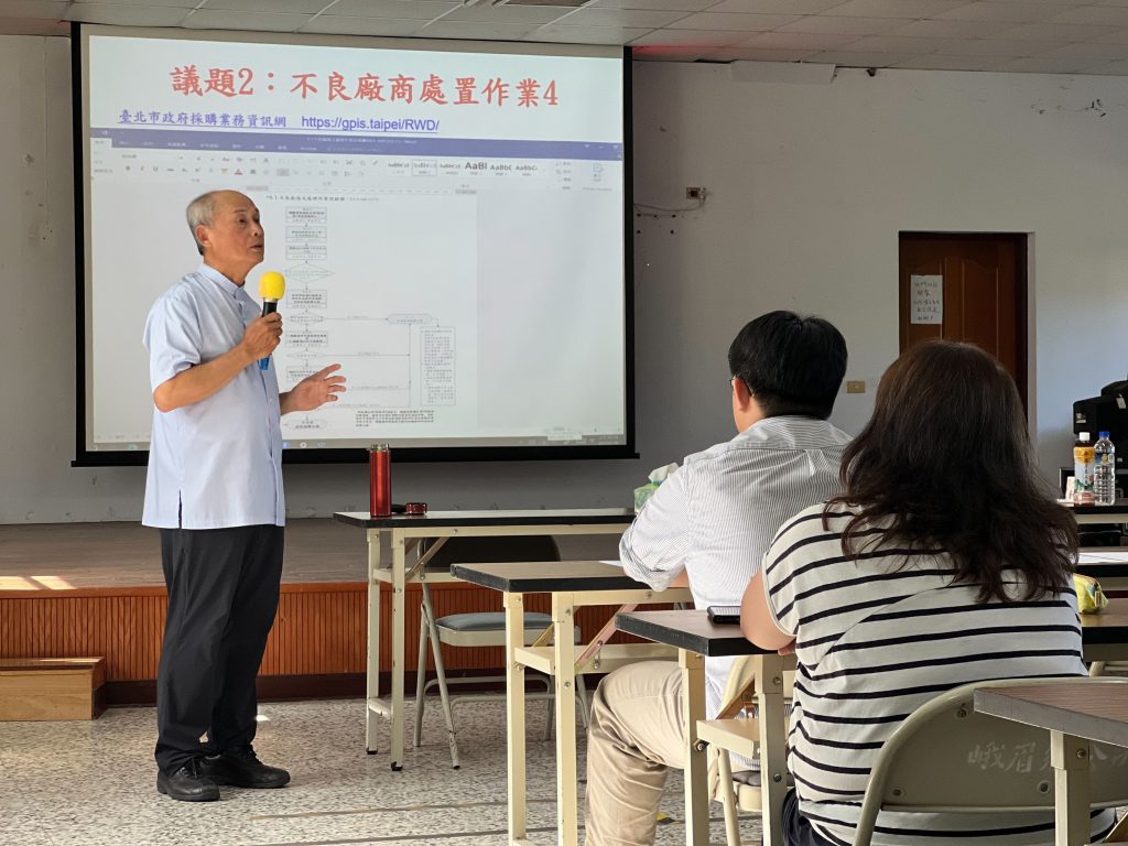 新竹縣政府政風處為強化偏遠地區採購業務內控機制,六日啟動採購輔導列車開進峨眉鄉,邀請資深採購法講師陳有政講授「政府採購案件履約爭議後續處理實務」課程,期透過加強專業知識,從預防的角度機先發掘問題並予以解決,降低採購業務風險,現場峨眉鄉公所及鄰近國民中小學人員專心聆聽,透過研習及面對面輔導提升偏遠地區採購效能,確保公共資源的正當運用。