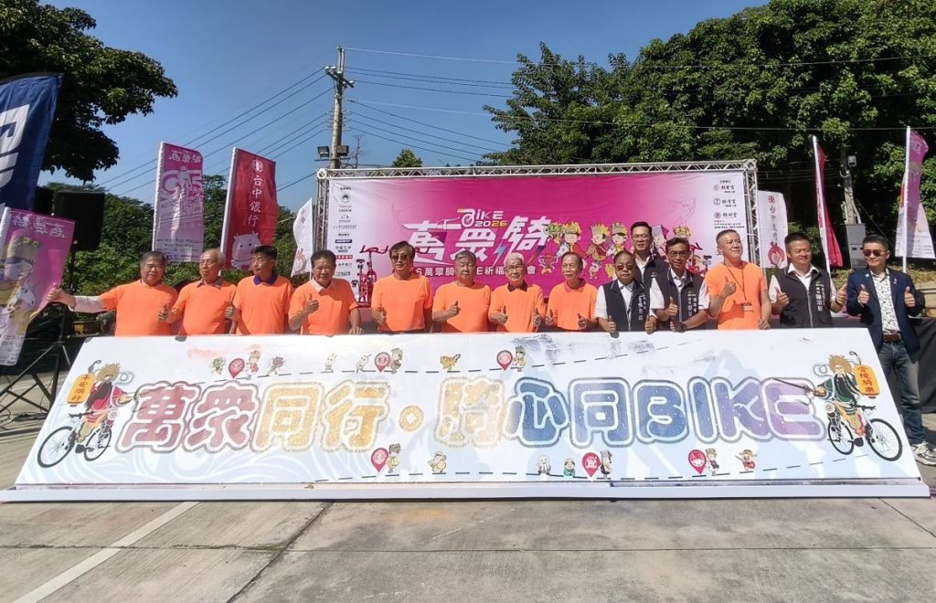 「2026萬眾騎BIKE」六宮主辦單位共同出席邀請騎友們「有騎有保庇」。(記者楊文琳攝)