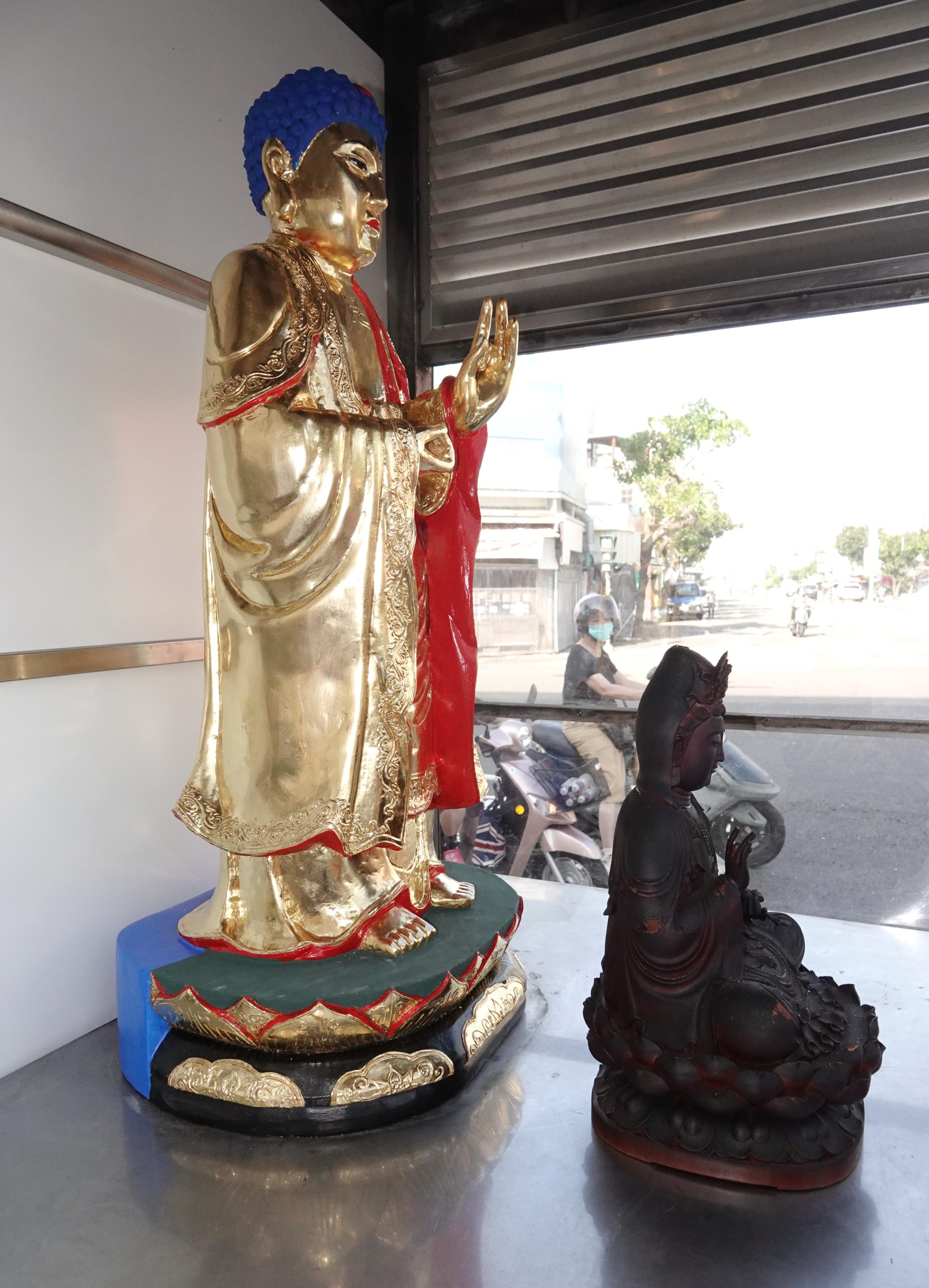 此次才集資十萬元送木雕師父皮重新整理,還貼上金箔;亞克力神龕也改裝可讓空氣對流的百葉窗,讓神像不會那麼快損壞。
