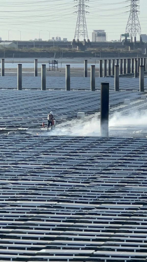 彰濱工業區崙尾東04區水面型太陽能案場上午發生電纜燃燒事件。業者聯合再生能源工程表示,受損範圍小,並無人員傷亡,對案場整體運作與周邊環境也未造成影響,初步研判為電纜區域短路所造成。