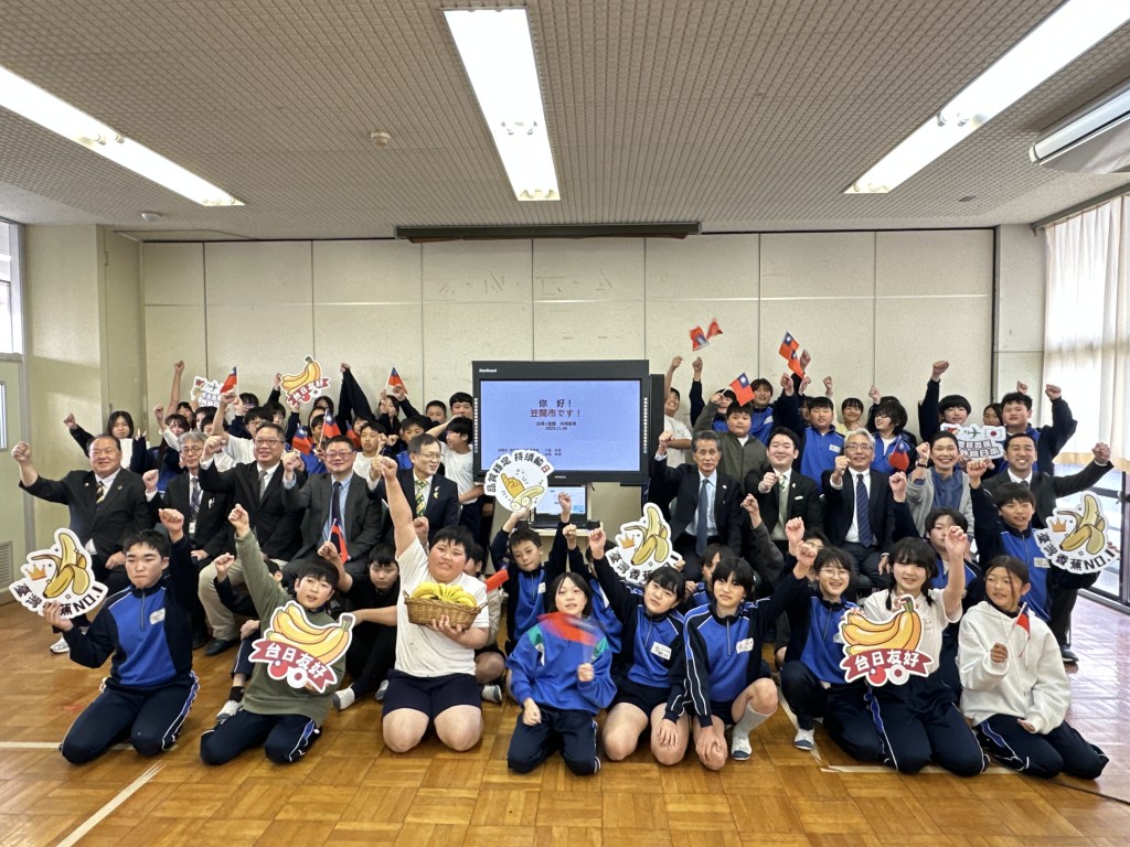 農糧署進一步說明,6日跨國學校午餐交流適逢日本笠間市內學校辦理的「臺灣香蕉日」,別具意義。臺日兩校共同菜單納入了雙方營養師的巧思,臺灣方面設計了超級下飯的「臺式打拋肉」,日本方面則設計了溫潤健康的「豆乳味噌湯」,除了共享的共通菜色,兩校更交換了最具代表性的特色餐點,臺灣學童有幸品嚐到來自「日本笠間台灣辦事處」所提供的「栗子澀皮煮」,而日本學童則享用了來自臺灣的國產水果「香蕉」。