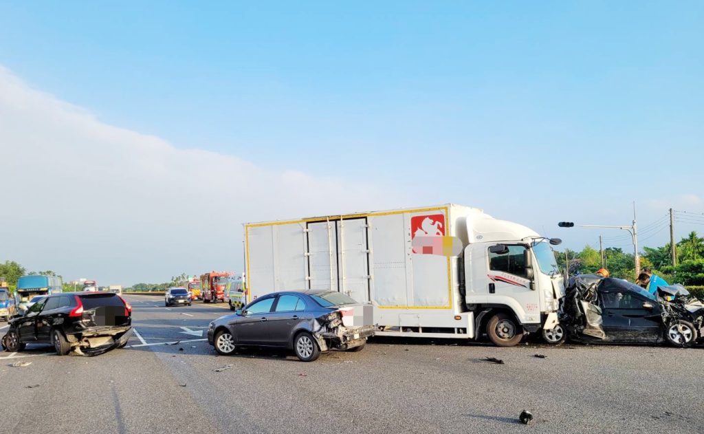 屏東佳冬戰備跑道發生大貨車追撞五部自小客的三傷車禍,傷者意識都清楚,並造成台一線南下交通一度受阻約兩小時。
