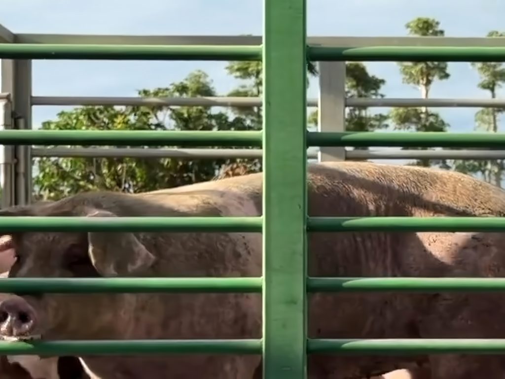 活豬禁運禁宰令解除,台東地區養豬戶七日一早開始運豬到肉品市場拍賣,由於多養了十多天,毛豬重量從大約從一百公斤,增加到一百二十公斤左右,養豬戶說,價格由拍賣市場決定。