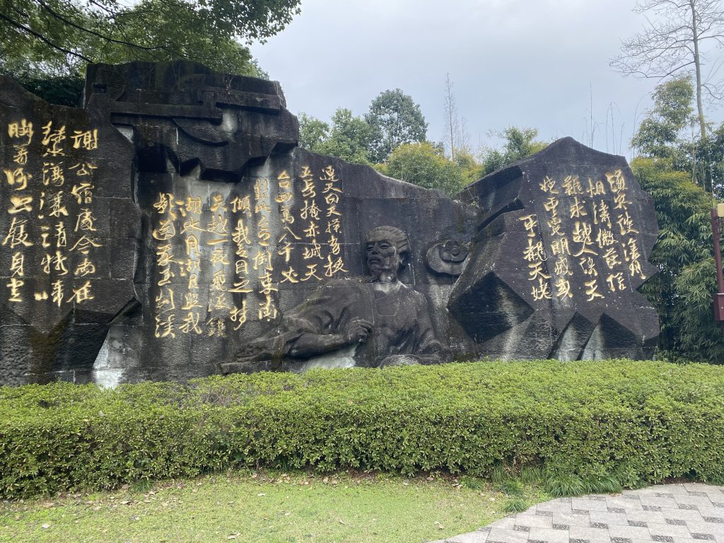 李白碑林是後人為紀念李白所建,蒐集了歷代文人雅士題寫的詩文碑刻,園內石碑林立,字字珠璣,彷彿在講述詩仙的輝煌與傳奇。在「蜀道之難,難於上青天」的石碑前,感嘆它的氣勢磅(石薄)令人震撼。碑林內還有許多描繪李白生平的石刻畫像,從少年求學、壯年漫遊,到晚年孤獨歸隱,無不展現出詩人瀟灑豪放卻又飄零落寞的人生,置身其中,歷史與詩意交織,讓人沉浸在對李白的無限遐想之中。