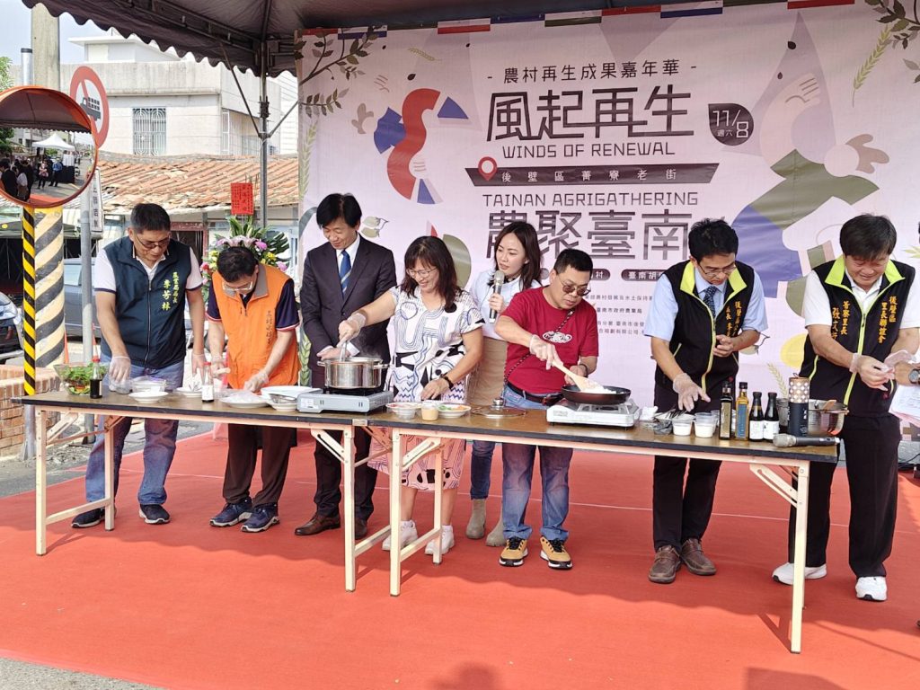 南市農業局八日在後壁區菁寮老街舉辦農村再生成果嘉年華,今年活動主題為「風起再生、 農聚台南」,透過農村市集、廚師料理秀、胡麻食農教育主題展覽等動靜態展出,展現台南歷經丹娜絲颱風災後復原再生面貌,也展現台南農村再生的具體成果,現場相當熱鬧。