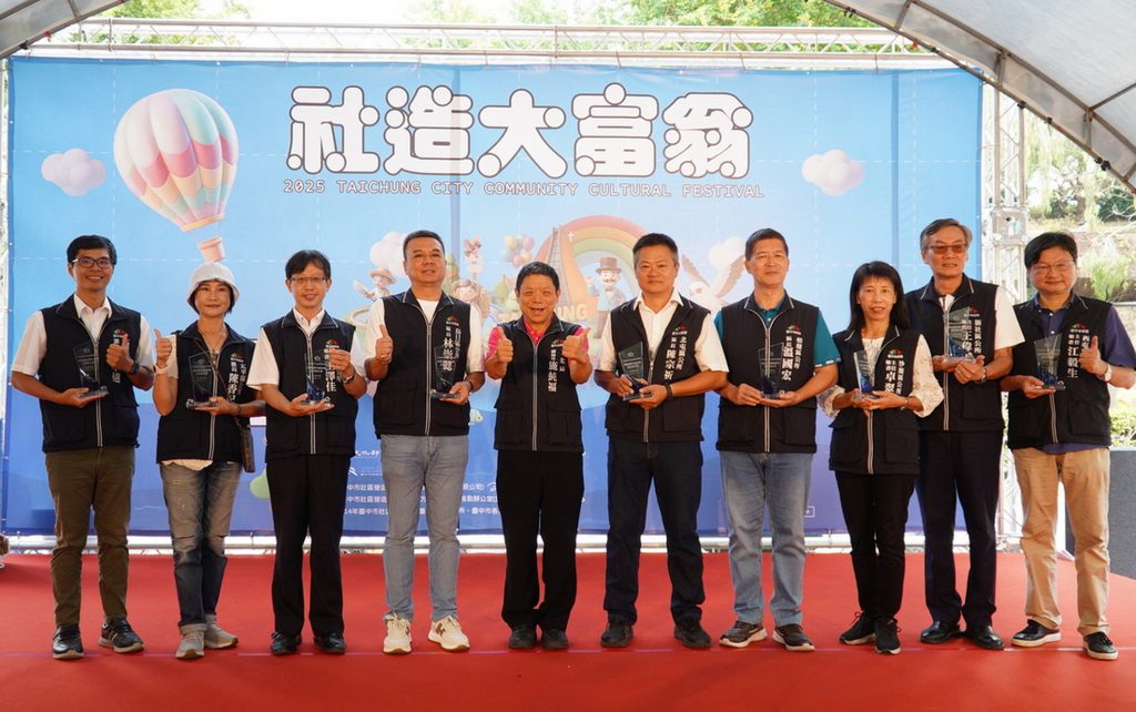 文化局表示,昨日重頭戲頒發台中市年度社區營造的榮耀「社造金區獎」。此次表揚九個獲獎的區公所,感謝所有公所同仁們的辛勤付出與陪伴,讓台中這座城市更加美好,獲獎單位分別為西屯、梧棲獲得「區域規劃總體獎」;石岡、新社獲得「資源運用整合獎」;太平、沙鹿獲得「成果傳承延續獎」;后里、烏日、北屯則獲得「策略操作創新獎」。