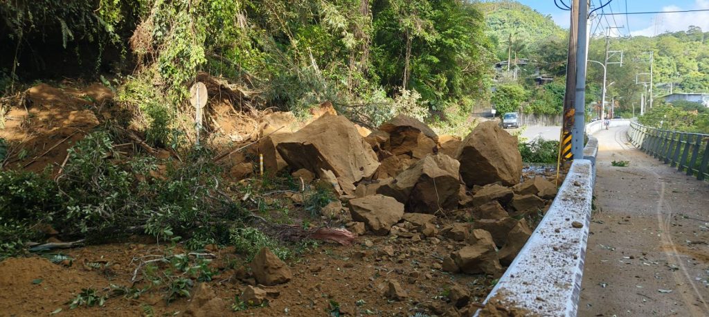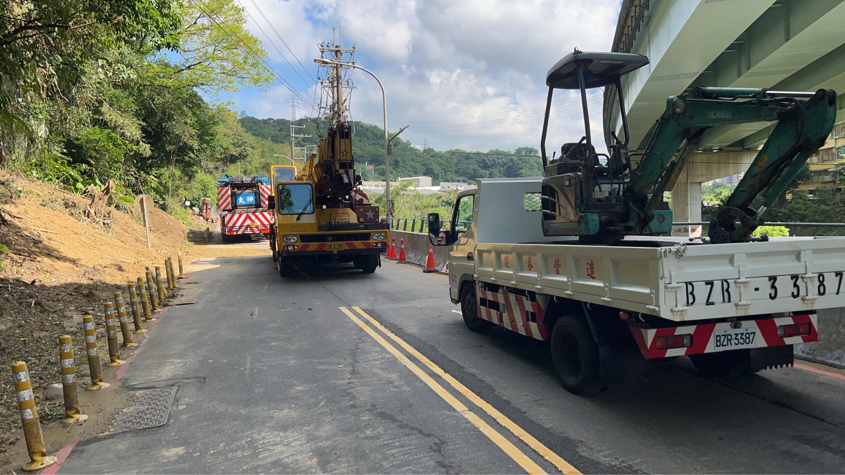 市府工務處災害發生後,市府除已完成土石清運、道路清理,已完成道路搶通作業,並立即邀集臺灣省土木技師公會基隆辦事處、本市水保服務團技師及專業施工團隊現場會勘研究,並由起重機吊掛人員方式觀察岩體及節理,以掌握邊坡穩定情形。