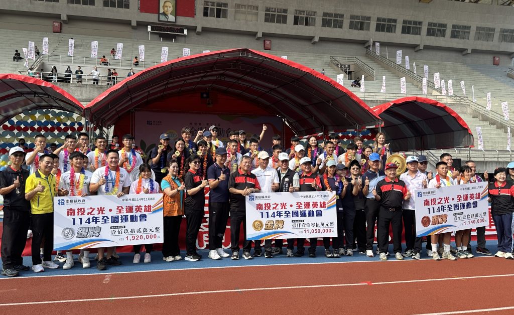 南投縣運動會八日登場,縣府在開幕式中表揚全運會奪牌選手與教練,期勉「南投之光」持續在體育舞台閃耀發光。今年全運會,南投獲十二金、七銀、十二銅,成績亮眼。