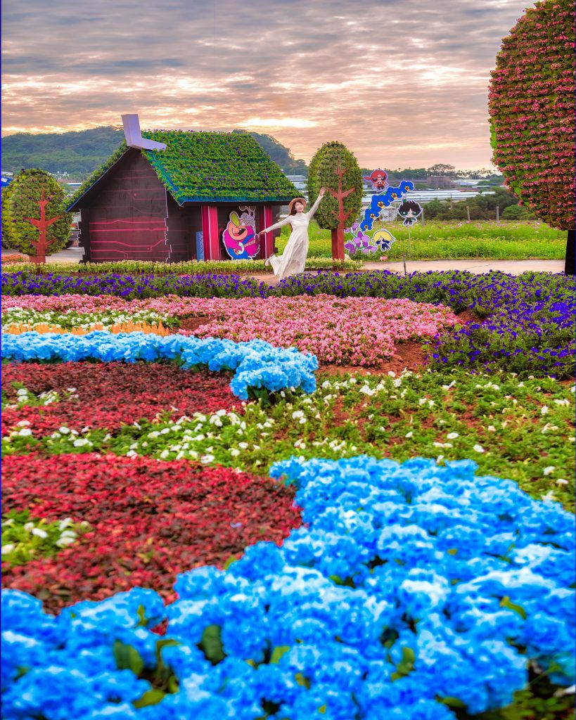 「新社花海暨台中國際花毯節|花開三盛事:花海、花毯、中農展售會」在新社區種苗改良繁殖場二苗圃登場。觀旅局表示,現場有十五個裝置及角色立牌為歷年最,主花毯規模歷屆最大;其中,高十八公尺、直徑六十公尺,以魔人啾啾的基地為裝置最高點,每隔半小時展演泡泡、水霧與機械動態效果,搭配盪鞦韆、甜甜圈店等,處處充滿驚喜。