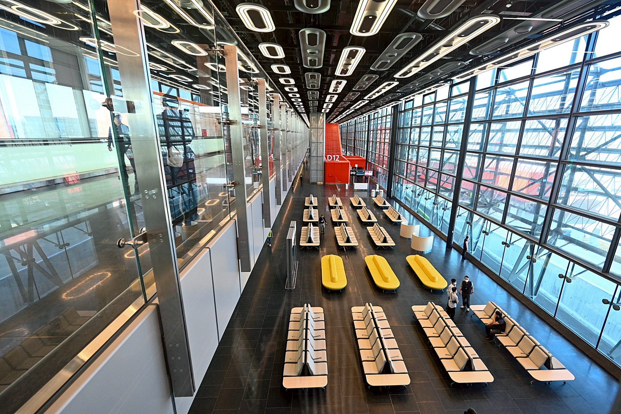 卓榮泰在交通部陳世凱部長及桃園國際機場公司楊偉甫董事長陪同下,首先視察桃園機場北登機廊廳工程概況。第三航廈建設分為三階段,北登機廊廳預計二0二五年底前啟用,主體航廈與南登機廊廳預計二0二七年底前陸續完工及營運測試,「桃園機場走過將近五十年,在第二航廈啟用後,終於要再有新航廈」。