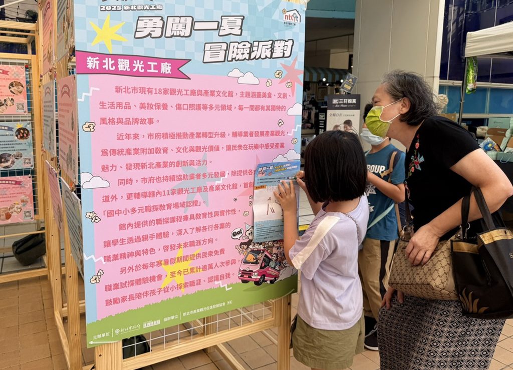 二0二五新北觀光工廠年度盛會「勇闖一夏. 冒險派對」壓軸活動八日在林口三井OUTLET PARK中央廣場熱鬧登場,現場集結十四家新北觀光工廠與產業文化館推出觀光工廠市集、趣味舞台表演、滿額集點抽獎、DIY體驗、職涯探索特展區及觀光工廠問答,現場吸引上千組親子家庭共襄盛舉,氣氛熱烈非凡。