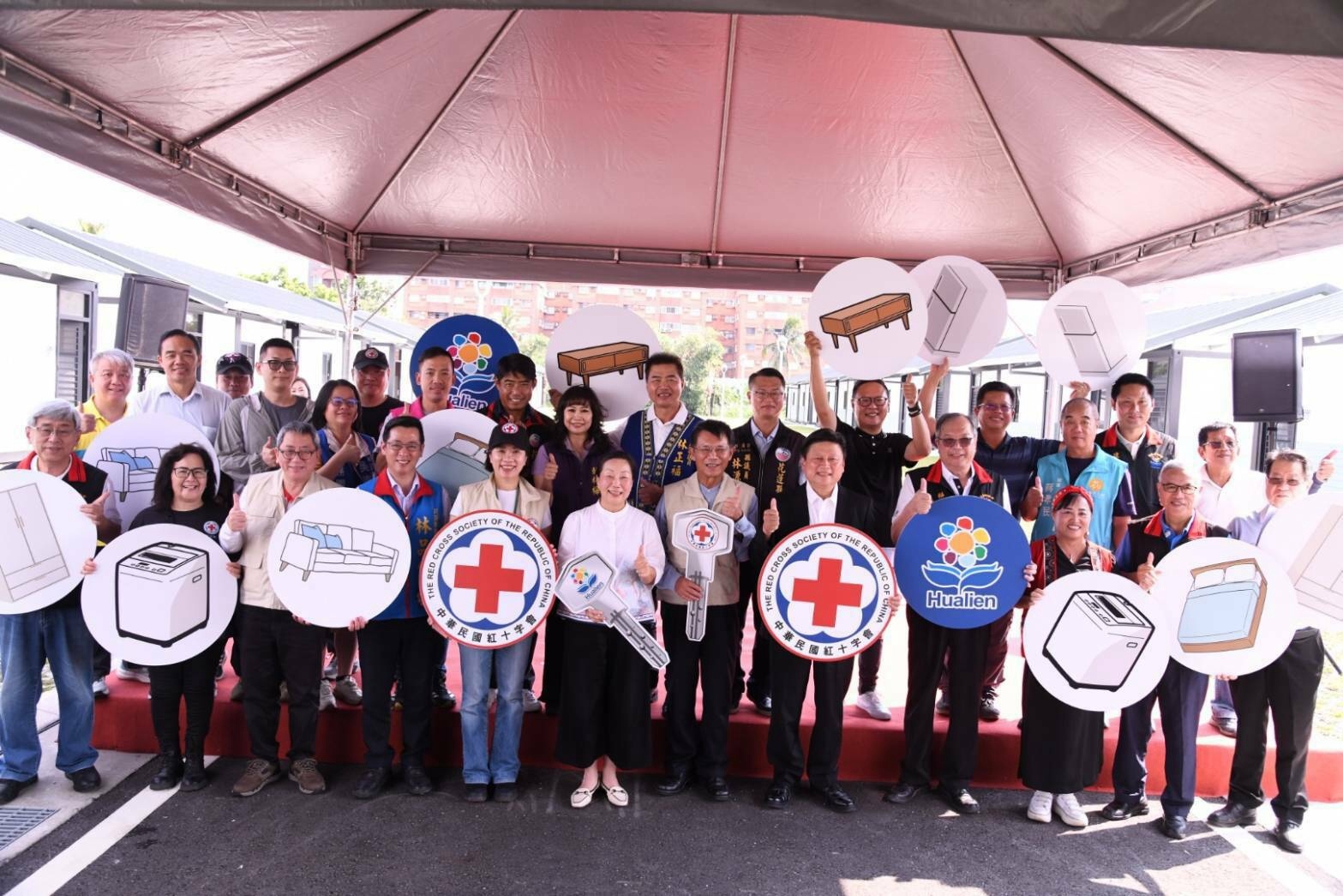 縣府感謝紅十字會捐助二千八百萬元建屋經費,還加碼家具跟家電,每戶都配有冷氣、流理台、雙口IH爐、洗衣機、冰箱、窗人床組、沙發及衣櫃等,讓災民可安心入住。