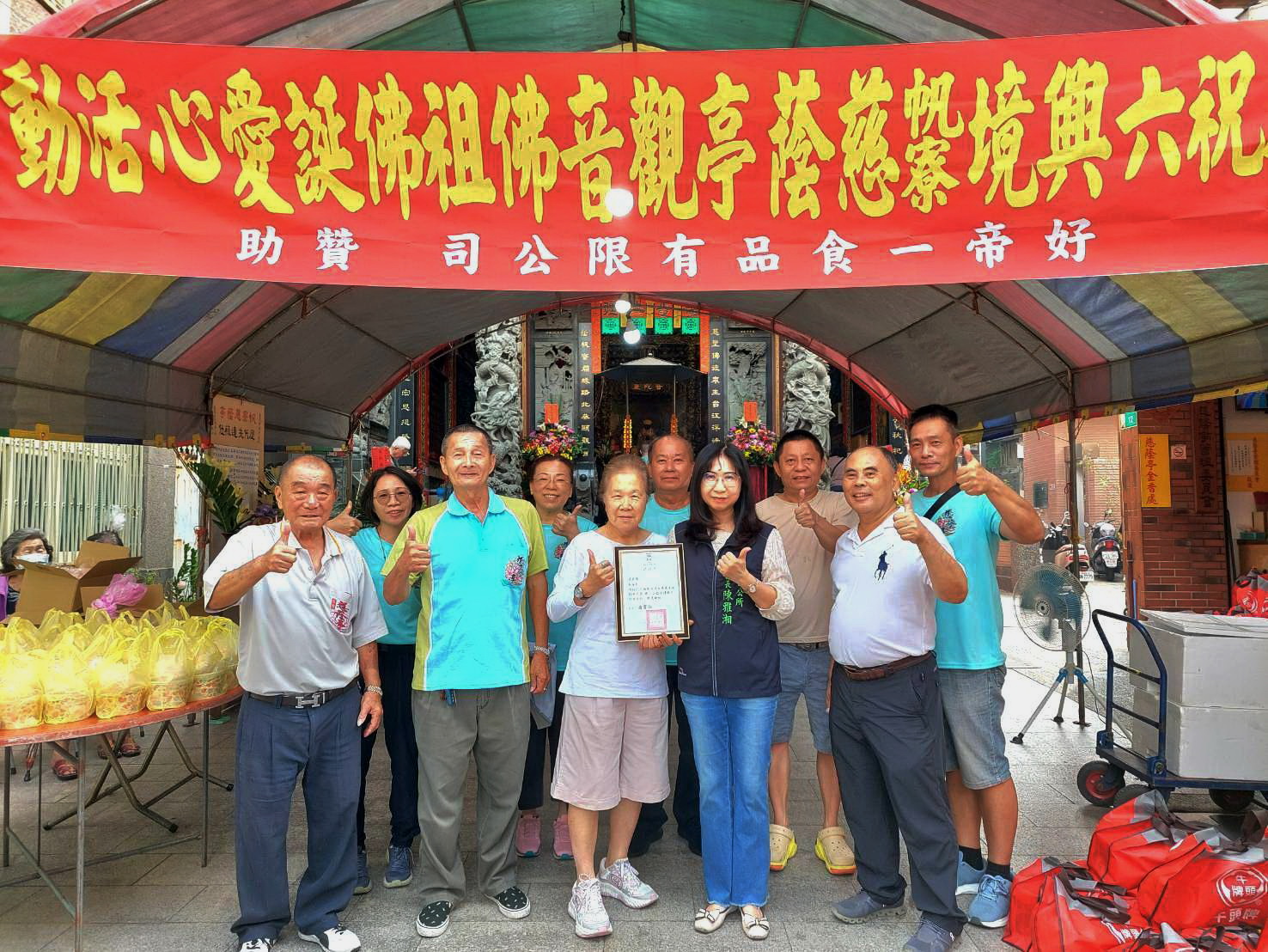 八日是觀音佛祖出家紀念日,以牛頭牌沙茶醬聞名的好帝一食品公司,在慈蔭亭針對北區二百零六戶中低收家庭,發放紅包和物資,總金額達三十四萬九千八百三十元。