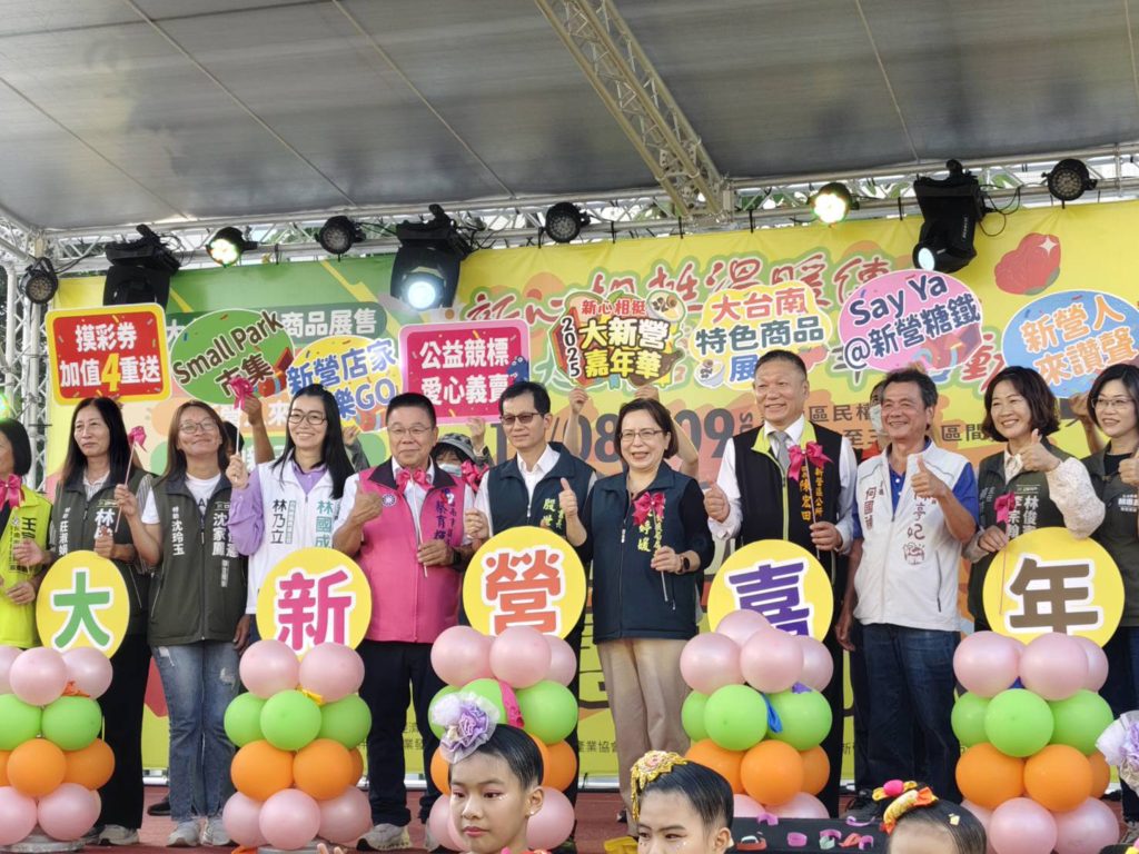 二0二五大新營嘉年華開幕式,包括市府副秘書長殷世熙、經發局長張婷媛、多位民代、新營區長陳宏田等人出席,為活動揭開序幕;殷世熙邀請全國民眾八日和九日兩天到新營走走逛逛、支持在地商家。