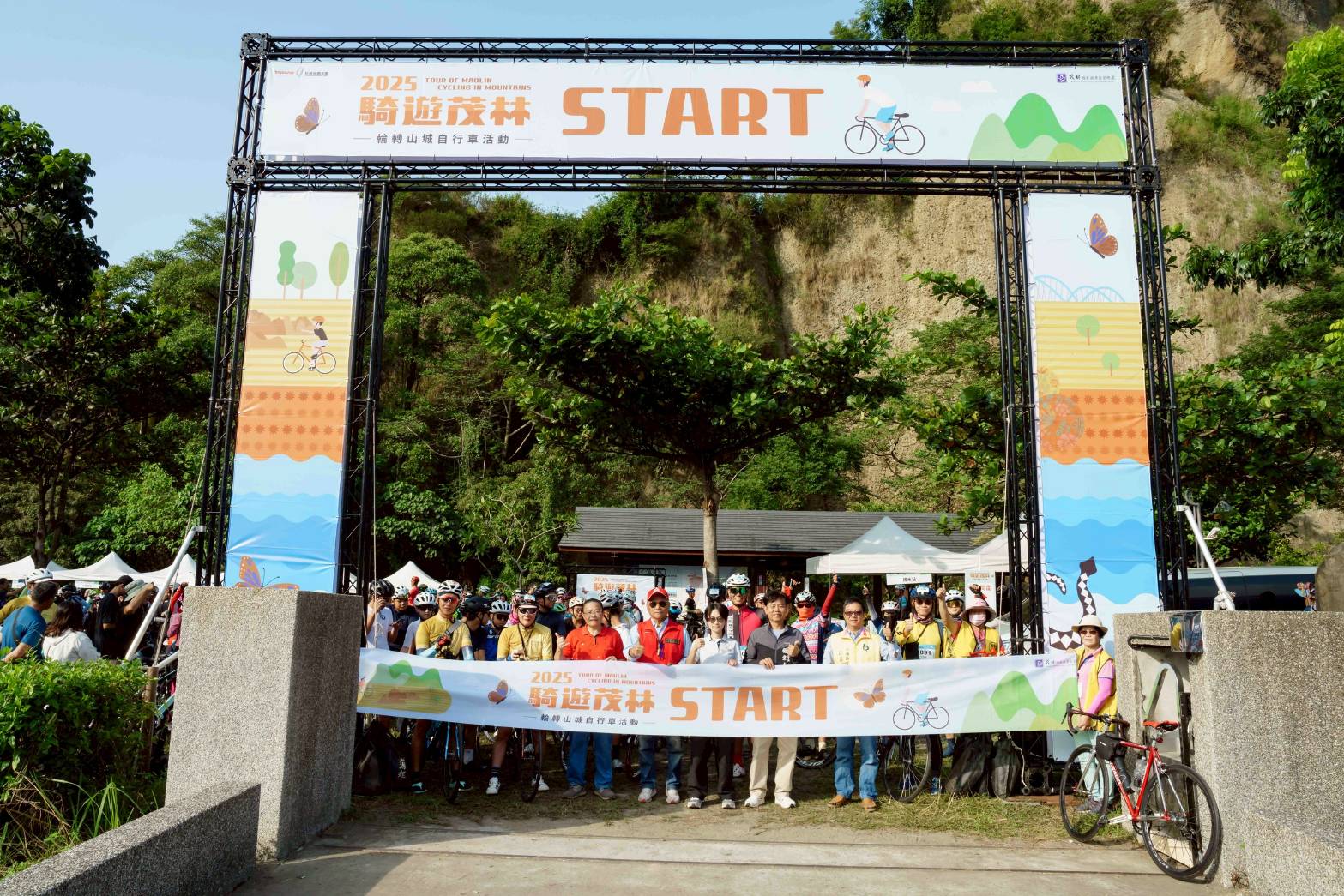 茂管處「騎遊茂林.輪轉山城」自行車活動, 在台27甲線十八羅漢山服務區開騎。(記者鄭伯勝翻攝)