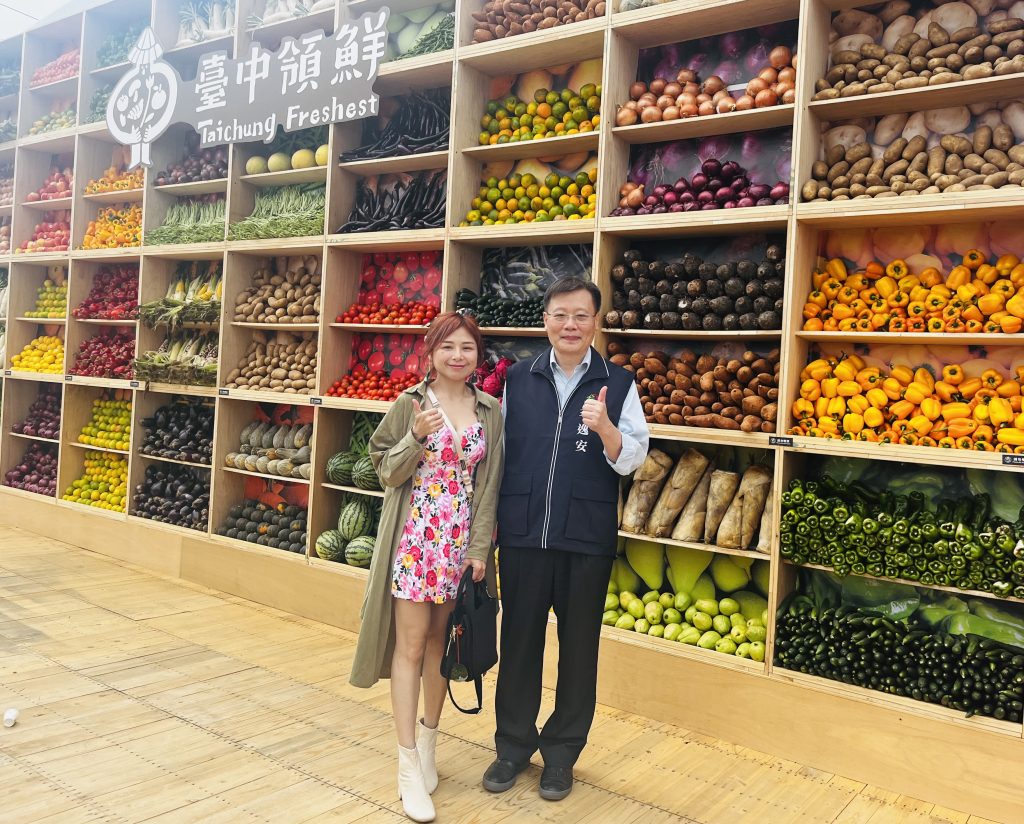 農業局說明,展售會以「農業豐饒、區域特色、永續智慧」為願景,邀集中台灣八縣市共同打造七大主題展館,展現從蔬果、花卉、茶品、咖啡到加工品的多樣風貌。其中「台中領鮮館」外牆及其斜對側特別策劃兩座大型裝置藝術,創意手法結合地方農產特色,參觀民眾在拍照打卡之餘,農業創新與設計結合的力量。