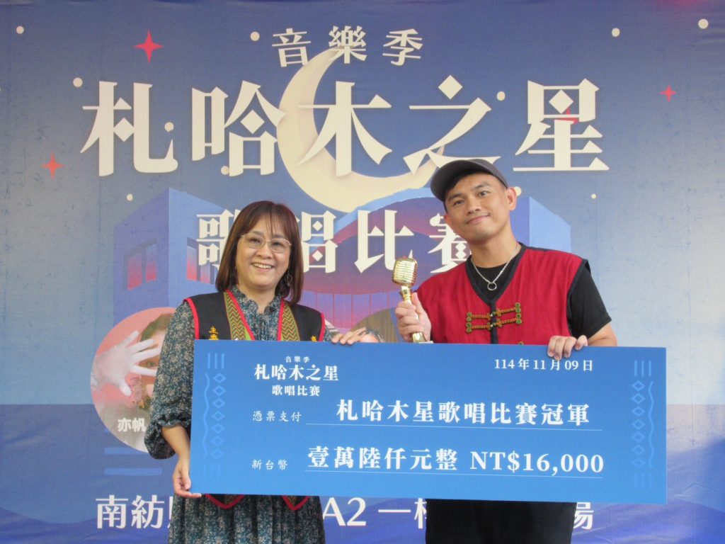 臺南市政府原住民族事務員會主委白惠蘭Salau Kaljimuran晚間公布成績表示,本屆「札哈木之星」歌唱比賽歷經1個月的網路海選及初賽,冠軍得主閣鴻麟、亞軍俞愿群、季軍陳思妍及殿軍買治佑,現場投票選出買治佑獲得最佳人氣獎,期待這些選手們在音樂領域持續勢力,讓更多人聽見原住民的好聲音。