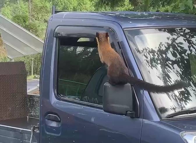 宜蘭太平山遊樂區,近日保育類動物黃喉貂頻頻現蹤,最近有輛貨車停在翠峰湖第一停車場,副駕駛座車窗沒關好,一隻黃喉貂疑似為了覓食,兩度從車窗縫隙鑽進車內,調皮萌樣被網友PO上網,笑翻了一堆人。