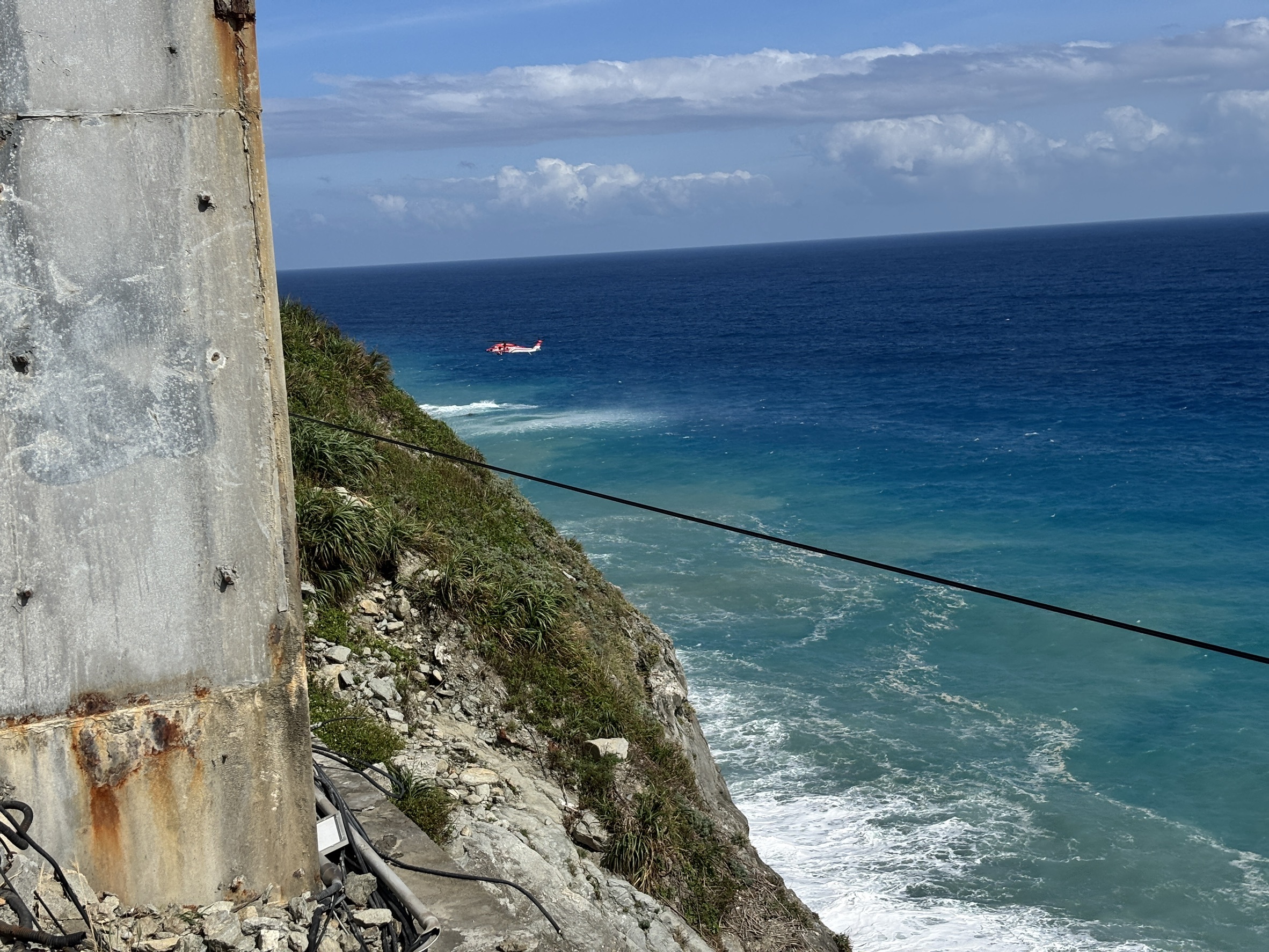 消防局強調,因同行四名遊客受困於下方約五十米深海灘,消防局警義消同仁垂降後使用繩索技術協助上拉至路面脫困,於十二點四十八分左右完成民眾脫困問務,並給予傷口包紮後離開現場。