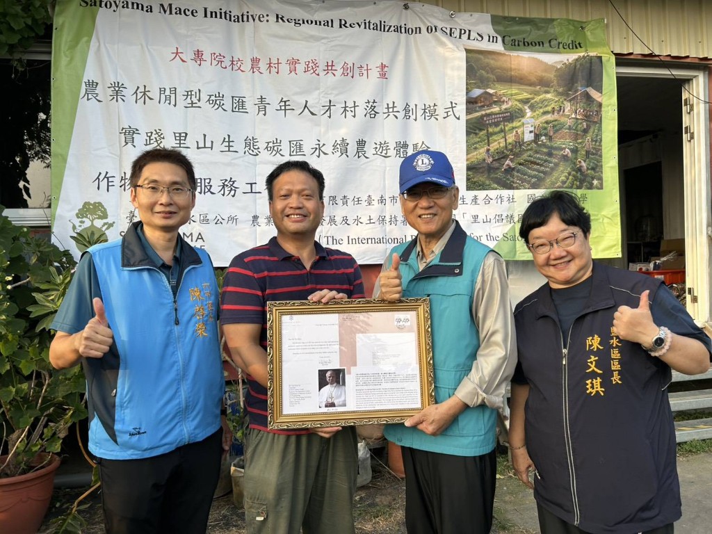 成大教授蘇彥勳團隊推動的聯合國授權計畫「里山權杖倡議」(Satoyama Mace Initiative),在永續碳匯與在地原住民社群永續發展的努力,近期獲得梵蒂岡教宗(Pope Leo XIV)肯定,除感謝團隊分享作品,並贈送簽名照表支持。