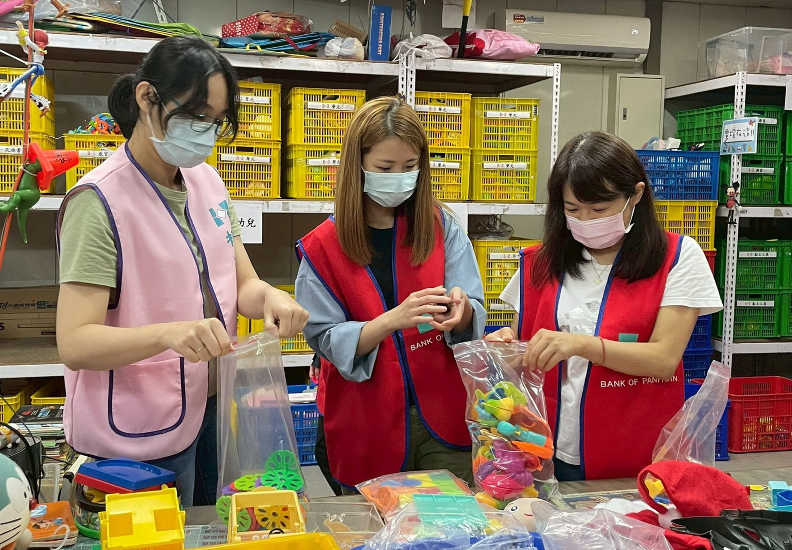 為推動企業參與公益,新北市府透過志願服務推廣中心邀請企業投入志工行列,板信商業銀行再次響應志願服務體驗活動,由板信商銀主管、員工及家屬利用週末假日一起到新北玩具銀行物流中心擔任「玩具志工」整理二手玩具,在玩具銀行人員帶領下,認識玩具再利用的流程與理念,讓閒置的玩具重獲新生。