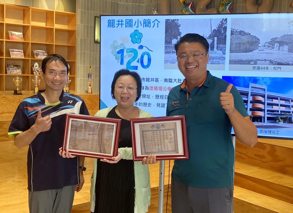 台中市龍井國小今年建校一百二十年,校方擴大舉辦慶祝活動,向各界徵件校史文物,經由地方文史工作者引薦,居住於台北市張文玲得知此消息後,專程回中市龍井區水裡港的百年祖厝,尋找曾祖父也就是日治時期塗葛崛區區長暨首位龍井區農會理事長張錦上,曾在一百二十年前,日大正四年捐贈二甲多的校地,日大正五年台灣總督府特別頒發的感謝狀,珍貴的古文物如今首度曝光,成為龍井在地教育發展的重要見證。