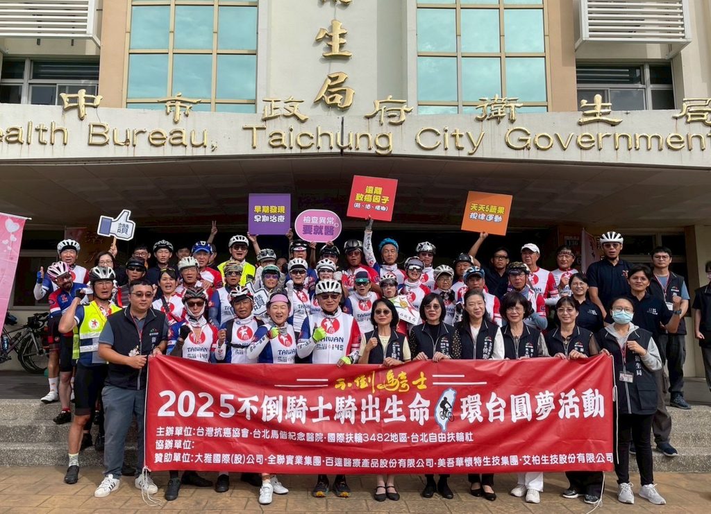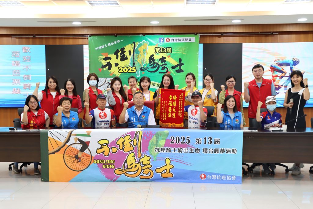 台灣抗癌協會第十三屆「不倒騎士‧騎出生命」單車環台活動,十日先後抵達台中市衛生局、苗栗縣政府拜會。台灣抗癌協會創會理事長吳興傳今年亦參與陪騎,希望透過運動的力量,鼓勵更多癌友走出病痛陰霾,以運動戰勝病魔,重拾自信。