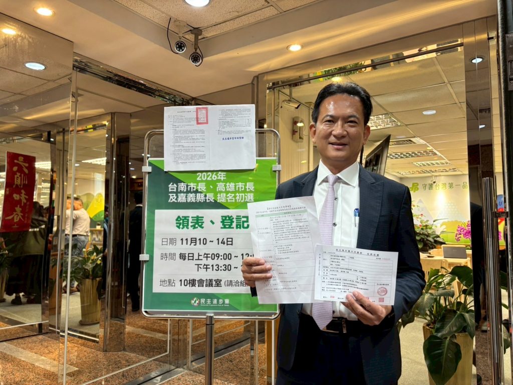 民進黨迎戰二0二六選舉,台南市、高雄市及嘉義縣等三個縣市首長提名初選,十至十四日領表登記。立委邱議瑩一早搶頭香完成高雄市長初選登記,立委林俊憲下午也完成台南市長初選登記。