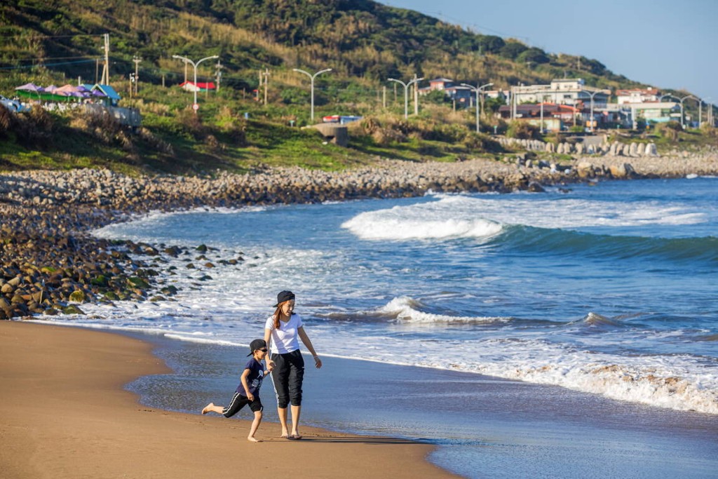 金山中角灣是北海岸名聞遐邇的衝浪天堂,淺灘區沙子細膩少有石頭。(新北市觀旅局提供)
