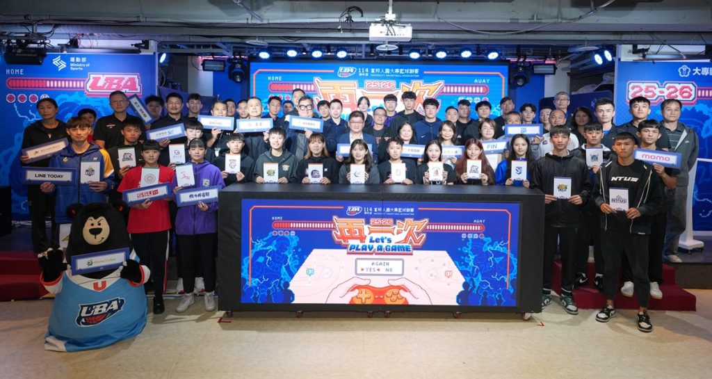 114學年度大專籃球聯賽開賽記者會全體合影。(運動部提供)