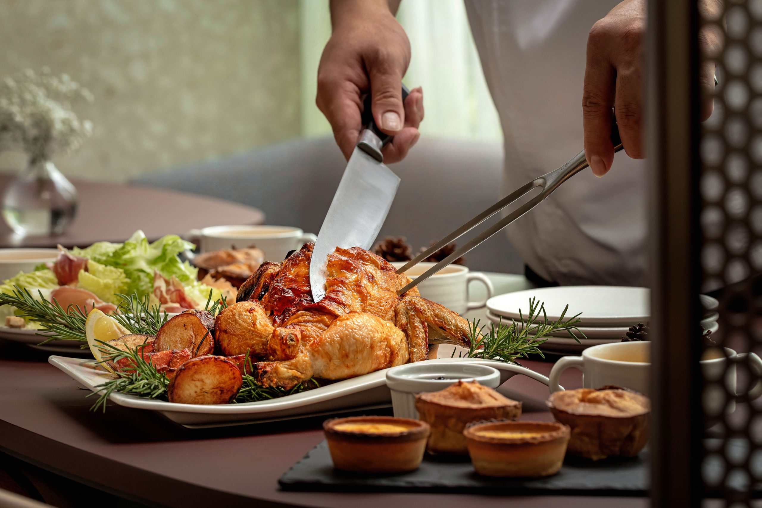 感恩節不僅是美國文化當中烤火雞、共享盛宴的一項傳統節日,它更潛藏著「從土地到餐桌的互相照應」的普世心意。立足台灣46年的國聯大飯店,有感於台灣一樣承載著多重移民與文化融合的軌跡。以「本土化感恩節」為起點,推出期間限定「野蕈香料鑲雞」,特選用台東栗子南瓜、紅藜,新竹尖石鄉高山菇類等部落農產品入菜,呼應一段段關於「共生」、「同行」到互相扶持成長的故事,也把食物當成一種說謝謝的方式。「野蕈香料鑲雞」內用四人餐每組2,180元(另加一成服務費),包含野蕈香料鑲雞、帕瑪雞肉凱薩沙拉、約克夏布丁、南瓜濃湯、起司火腿鹹派、主廚甜點及綜合莓果醬與雞肉醬汁、粉紅氣泡酒等。另提供外帶禮盒售價1,080元,含野蕈香料鑲雞、約克夏布丁、綜合莓果醬與雞肉醬汁。即日起至聖誕節及跨年12月31日供應,11月23日起每日上午11:30後取貨,需三日前預訂。