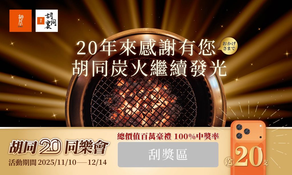 此外,集團20週年形象影片由董事長親自獻聲配音,以最真摯的感謝,回饋二十年來支持胡同的鐵粉們。週年慶活動持續進行至2025/12/14截止,刮刮卡數量有限,更多「胡同大橘色手機」等待幸運得主現身。
