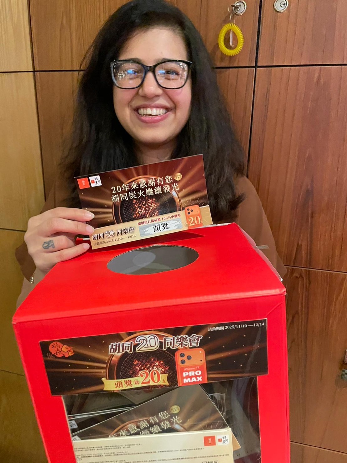 橘焱胡同集團歡慶胡同燒肉創立 20 週年,推出「胡同20同樂會」滿額贈刮刮卡活動,總計將送出 20 支 iPhone 17 Pro Max!活動首日即傳出捷報—首支頭獎由〈箶同燒肉夜食・胡同7號店〉幸運顧客刮中,為周年慶揭開熱鬧序幕。