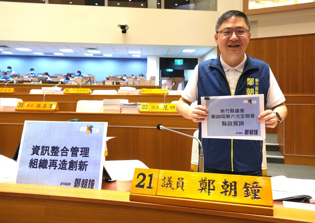 鄭朝鐘表示,經常接獲學生及家長反映遲遲等不到快捷巴士,或是班次時間與實際狀況不同,以六點卅分從竹北發車為例,到竹東高中可能已經超過八點,學生上學都遲到;監視器的部分,竹東外五里的聯外道路發生飆車或車禍時,仍接獲民眾反映沒辦法調取監視器畫面。另外,縣府即將成立數位資訊發展處,希望可以盡速整合及更新縣府各局處平台的資訊,讓民眾能快速查詢各種資訊及預約場地、場館等。